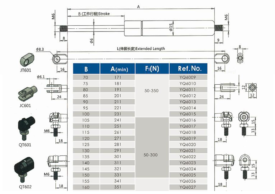 注:由于气弹簧是非标准的,以上仅为型号的一部分。我们可以根据客户的要求定制。