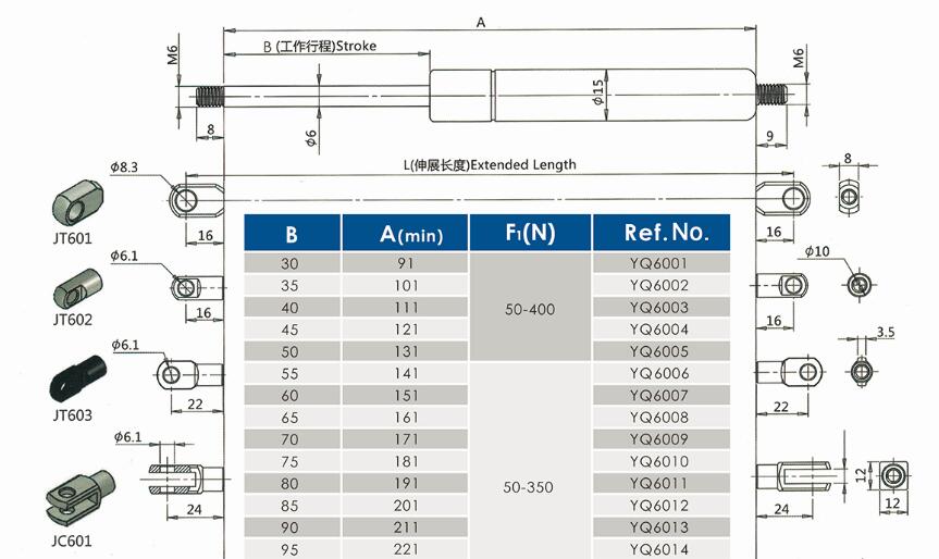 举升气弹簧YQ15/6-15